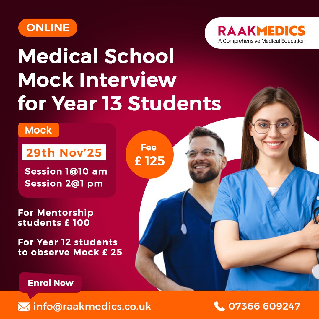 MMI Course & Mock for Year 13 Students Student DetailsStudent’s full name *Student’s email *Student’s mobile *Are you currently under RAAKMEDICS Mentorship program?YesNoParent’s full name *Parent’s email *Parent’s mobile *Mock Interview Session10 am1 pmPayment InformationCourse Fees *Please select an optionMock (Non-Membership) - £125Mock (Membership) - £100Year 12 students - £ 25Total Amount£Payment MethodStripeStripe *Consent *Confirm that all information provided is accurate and agree to the terms.REGISTER
